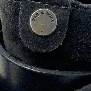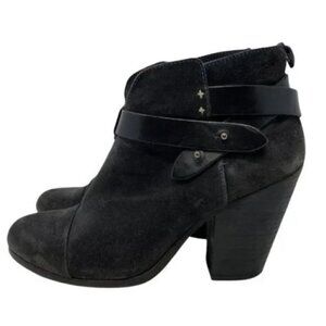 Rag & Bone Harrow Dark Gray Suede Cap Toe Ankle Boots - Size 8.5. Adjustable ankle strap. Asphalt gray suede upper and leather lining. Leather sole and stacked western heel. Almond Toe. Gunmetal hardware. Seamed-cap toe. Made in Italy.
