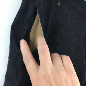 Womens dark lightweight denim gauchos pants. Zip fly with hook and eye. belt loops, 2 side pockets, 2 back pockets. Leg hem measurement when lying flat is 11"