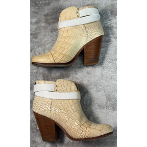 Rag & Bone Harrow Ivory White Croc Embossed Leather Cap Toe Boots Womens 7 EU 37 Good condition - see pictures for wear. Water stains across sides of both shoes as shown in photos.