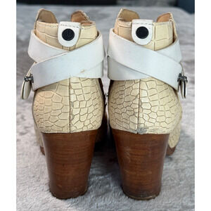 Rag & Bone Harrow Ivory White Croc Embossed Leather Cap Toe Boots Womens 7 EU 37