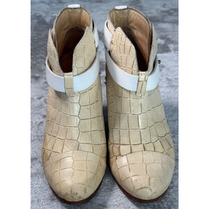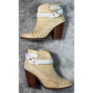 Rag & Bone Harrow Ivory White Croc Embossed Leather Cap Toe Boots Womens 7 EU 37