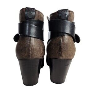 An all day everyday ankle boot with a walkable 3.5" stacked heel. Contrast leather ankle strap.