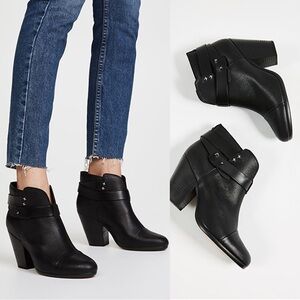 Rag & Bone • Harrow black leather ankle boots heeled bootie moto celeb strappy