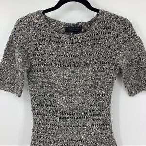 Rag & bone sweater dress 'Hart' Black, white, gray, marled open knit Cut-out back Full front lining, Waist down back lined - RETAIL $695