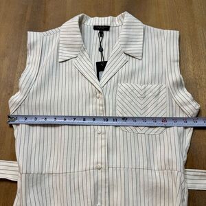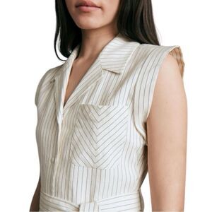 Rag & Bone women’s Helena stripe shirt dress. Size 8. Inspired by military style, and constructed with blue stripe linen fabric. Tie waist, chest and side seam pockets, and stripe detailing.