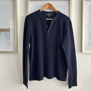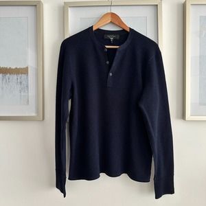 Rag & Bone Henley Shirt Mens Medium Merino Wool Knit Long Sleeve Navy Blue