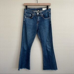 Rag & Bone High Rise Cropped Flare Jeans Raw Hem Paz Wash Dark 26