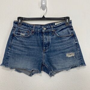 Rag & Bone High Rise Distressed Blue Raw Hem Shorts Size 27