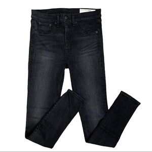 Stretch denim legging jeans featuring a slim fit, high rise, faux front pockets and two back pockets. Zipper fly and button closure. In excellent used condition EUC