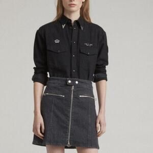 Rag & Bone Isabel Zip-Front Black Denim Mini Skirt Size 6