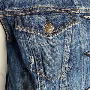 Like new, never worn, smoke free home - please note intentional distressing throughout.