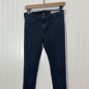 Rag & Bone JEAN Womens Sz 30 Night Black Legging Jeans Distressed Knees Raw Hem