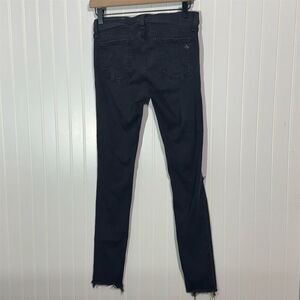 rag and bone jeans, rag & bone legging jeans, womens black skinny jeans, distressed raw hem jeans, night wash rag and bone, modal cotton blend jeans, size 30 rag and bone denim, stretch skinny jeans
