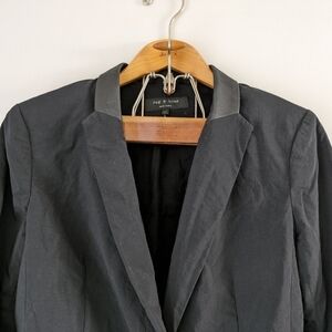 Rag & Bone Jacket Women's 10 Black Blazer Nylon Lamb Leather Collar One Button