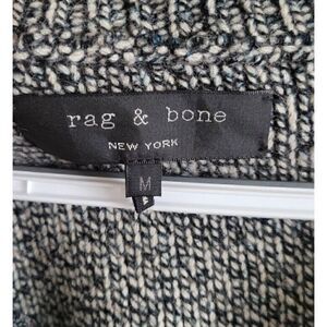 Elevate your sweater game with this chic V-neck ribbed knit sweater from Rag & Bone. Crafted from a heathered gray wool blend, this sweater features a tight-knit pattern with raglan sleeves and side slits for added accents. The classic design and all-season features make it a perfect addition to any wardrobe. Available in size medium, this sweater is suitable for women who appreciate style and comfort.