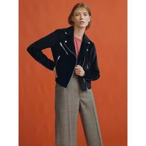 Rag & Bone / Jean Mercer Jacket Black Velvet Motorcycle Biker Zipper Collar S
