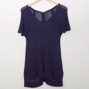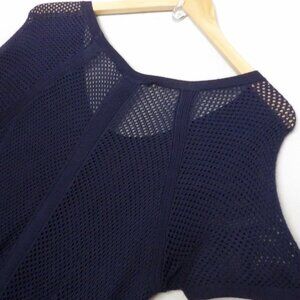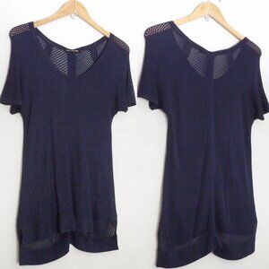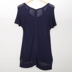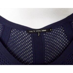 Rag & Bone Jean Sheer Mesh Knit Short Sleeves Top S Navy Blue See Thru Stretchy