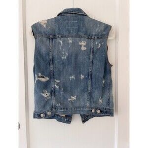 Rag & Bone Jean Women's Denim Collared Button Up Jean Vest Destroyed Tattered XS