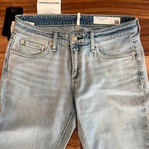 Super stylish, brand new with tags, Rag & Bone Dre Low-rise Slim Boyfriend Jeans in their brand new light denim wash! These have light distressing at the left knee and can be cuffed. Loose fit so would comfortably fit a 27.