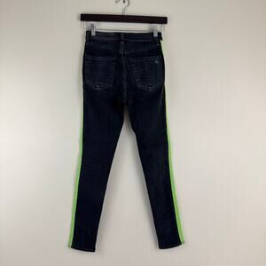 Rag & Bone Jeans Women's 25 Black Green Tuxedo Stripe Black Lime Pants READ