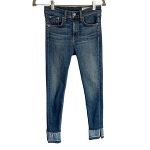 Rag & Bone Jeans Womens 25 Raw Hem Blue Mid Rise 10 Inch Ankle Skinny Jeans