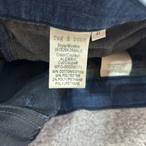 Rag & Bone Denim Jeans -- Ankle Skinny -- Dark Wash -- Raw Hem -- Style W1526K089ALE --
