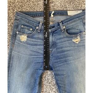 Rag & Bone Jeans Women's Size 27. Stretchy Dash Distressed Skinny Leg Blue Denim Festival Pants. No holes or stains. Purposely distressed and fabric shows normal wear.
