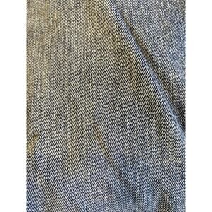 Pants denim material shows wear. Also, shown in pictures are light marker or ink markings on the front of your leg.