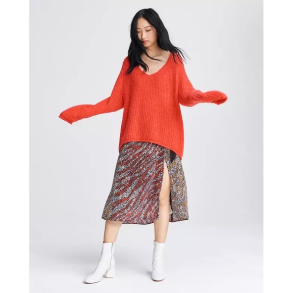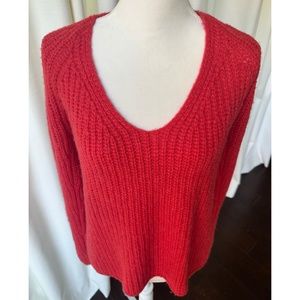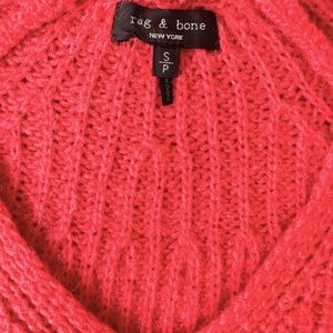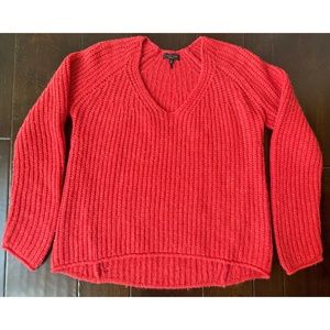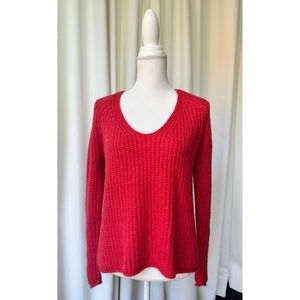 Rag & Bone Joseph Wool Blend V-Neck Sweater in Bright Coral, Size Small
