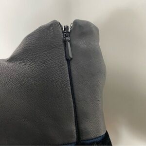 Soft supple lamb skin leather waist and satin and fringe mini skirt. Excellent condition. Perfect for a night out or pair with a black blazer for career wear.