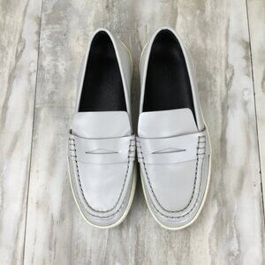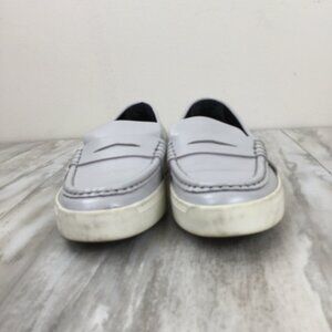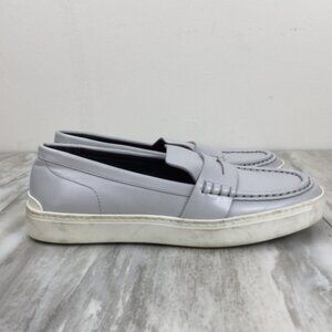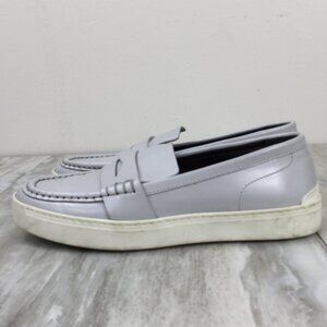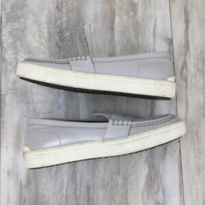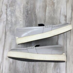 Embossed leather loafer slip on sneaker. Light grey/semi gloss genuine leather.