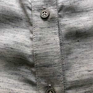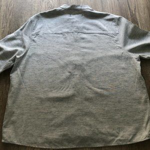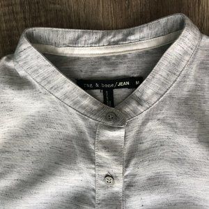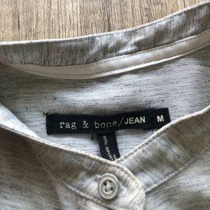 Coolest artsy neutral top ever. This is a Rag & Bone, gender-neutral type of top that could rock with any personality. Light heather gray, it is a linen blend, size Medium. It is less breathable, suggested for fall / winter or colder nights. Button at end of each long sleeve and wide fit - would look fantastic with skinny jeans and boots. The material has a unique textured look in the fabric. Nehru neck to be all the more cool. Worn twice. Excellent condition.