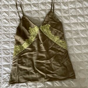 Elevate your style with this chic olive camisole featuring delicate lace trim. Perfect for any occasion.