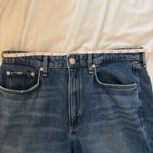 Rag & Bone Logan Mid-Rise Wide Leg Jeans, medium blue wash. Size 30 but runs large (more like a 31/32) - 17" half waist, 30.5" inseam. Only worn a handful of times, in great condition.