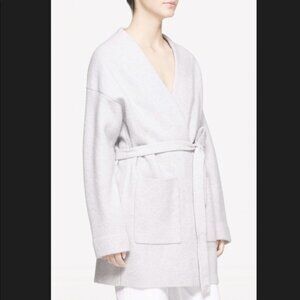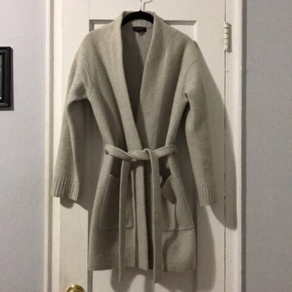 Thick wool cardigan sweater with waist tie and large front pockets.