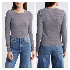 Rag & Bone Luca Stripe Long Sleeve Stretch Black White T-Shirt Size M.