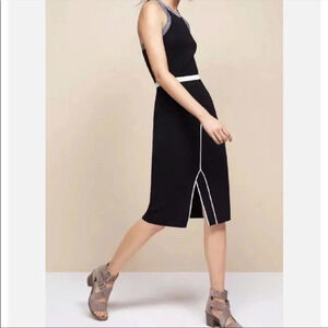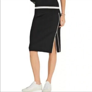 Rag & Bone Lucine front stripe side slit black knit midi skirt