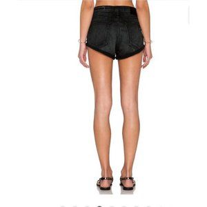 Rag & Bone Marilyn High Rise Button Fly Mini Denim Shorts in Black Hawk