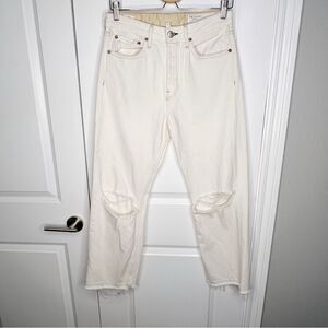 Rag & Bone Maya High-Rise Straight Jeans - Ecru with holes Distressed Size 27