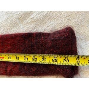 Red ombre pull over turtleneck sweater dress with long sleeves. Dress has slits at sleeves and is a wool blend. No issues at all with dress, in great shape