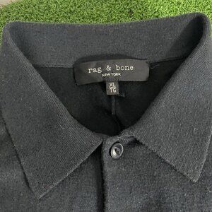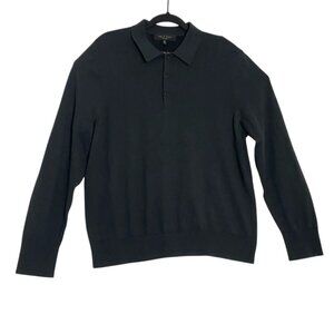 Rag & Bone Mens Black Gray Long Sleeve 3 Button Casual Polo Shirt Size XL