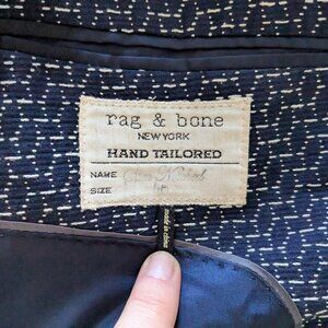 Rag & Bone Men's Slim Fit Navy Blazer with Embroidery Detail, Size 40