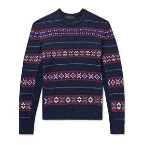 Rag & Bone Men's Wesley Fair Isle Navy Wool Sweater Size M