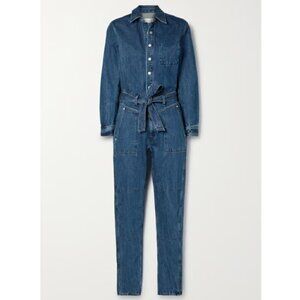 Cut slim through the waist and legs, rag & bone’s 'Mia' denim jumpsuit features a waist-cinching removeable belt and snap-front closure.