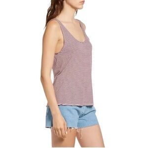 Rag & Bone Michal Linen Blend Tank Top in Burgundy Multi Striped