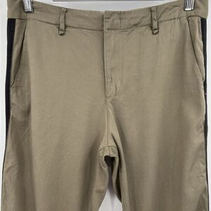 Rag & Bone Military Khaki Green Tan Beige Black Side Stripe Cuffed Chino Pants Cropped Tapered Leg High Rise Waisted Style # W1738V000MIL