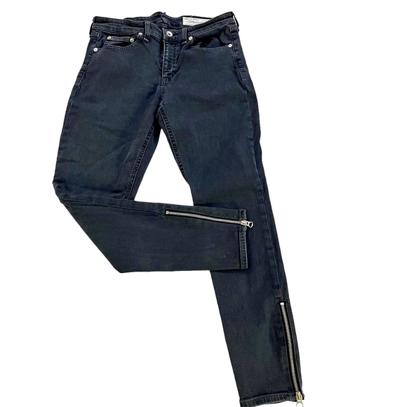 Rag & Bone Minna Black Washed Zippered Ankle Skinny Jeans