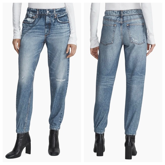 Rag & Bone Miramar Denim-Print Joggers Pants Jeans Distressing Fading Faux Denim