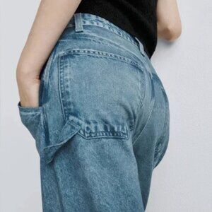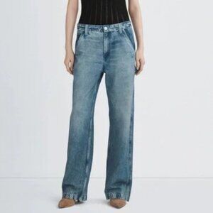 From Rag & Bone's popular Miramar collection of sweatpant jeans are these Sid Carpenter Pants, making classic workwear, elevated. This baggy carpenter pant is crafted in Miramar, a super-soft cotton terry often called, the softest "denim" in the world. They look like jeans, but they feel like sweatpants. Made with a utility pocket and hammer loop with printed back pockets. Waist measures 16" across. Rise is 12. Inseam is 29".