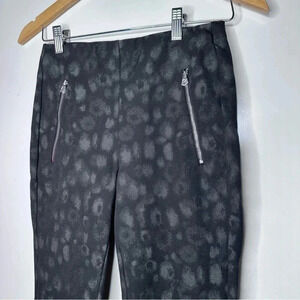 The leopard print on these slim pants tames its roar with grey-scaled tones and the zippered front pockets add an edgy touch.